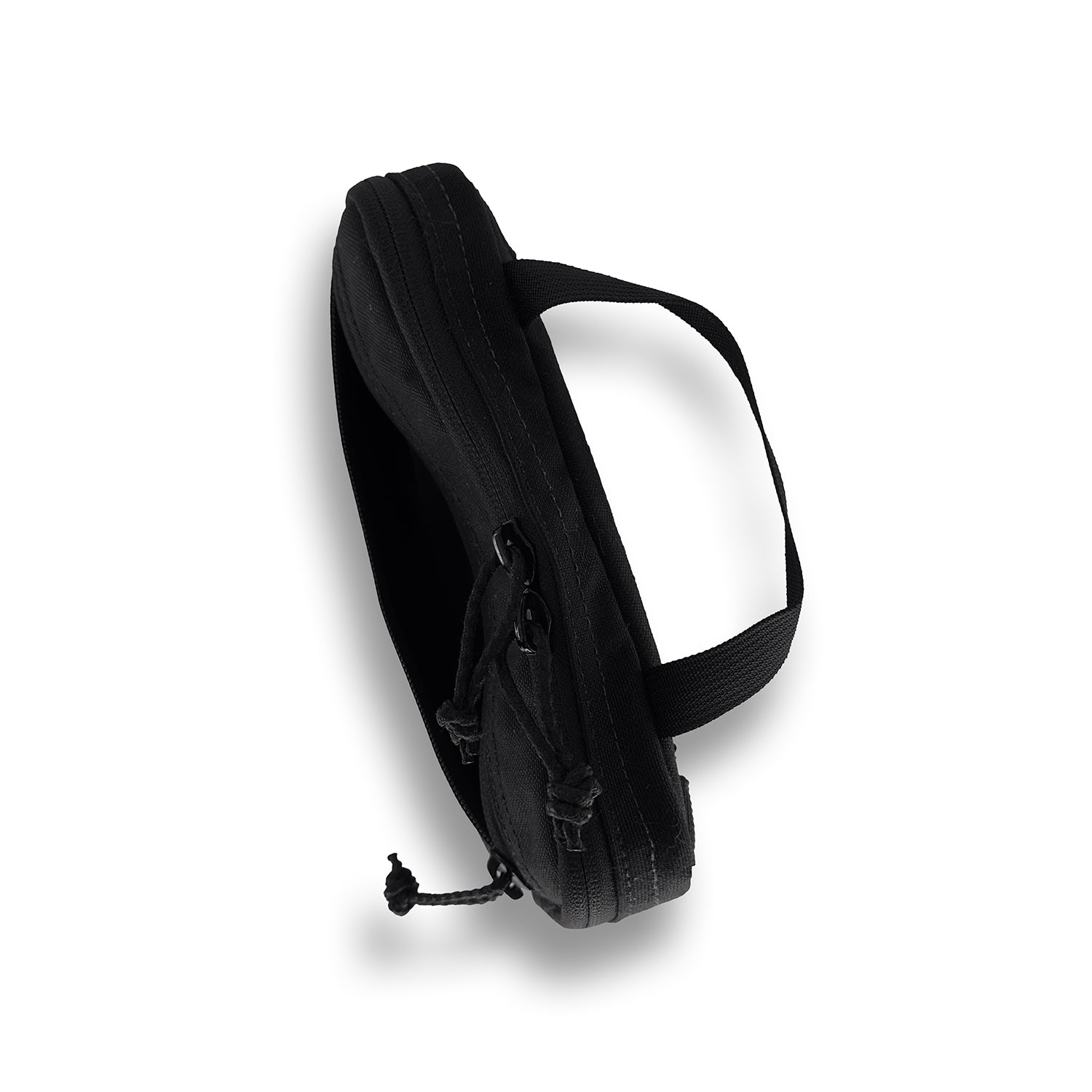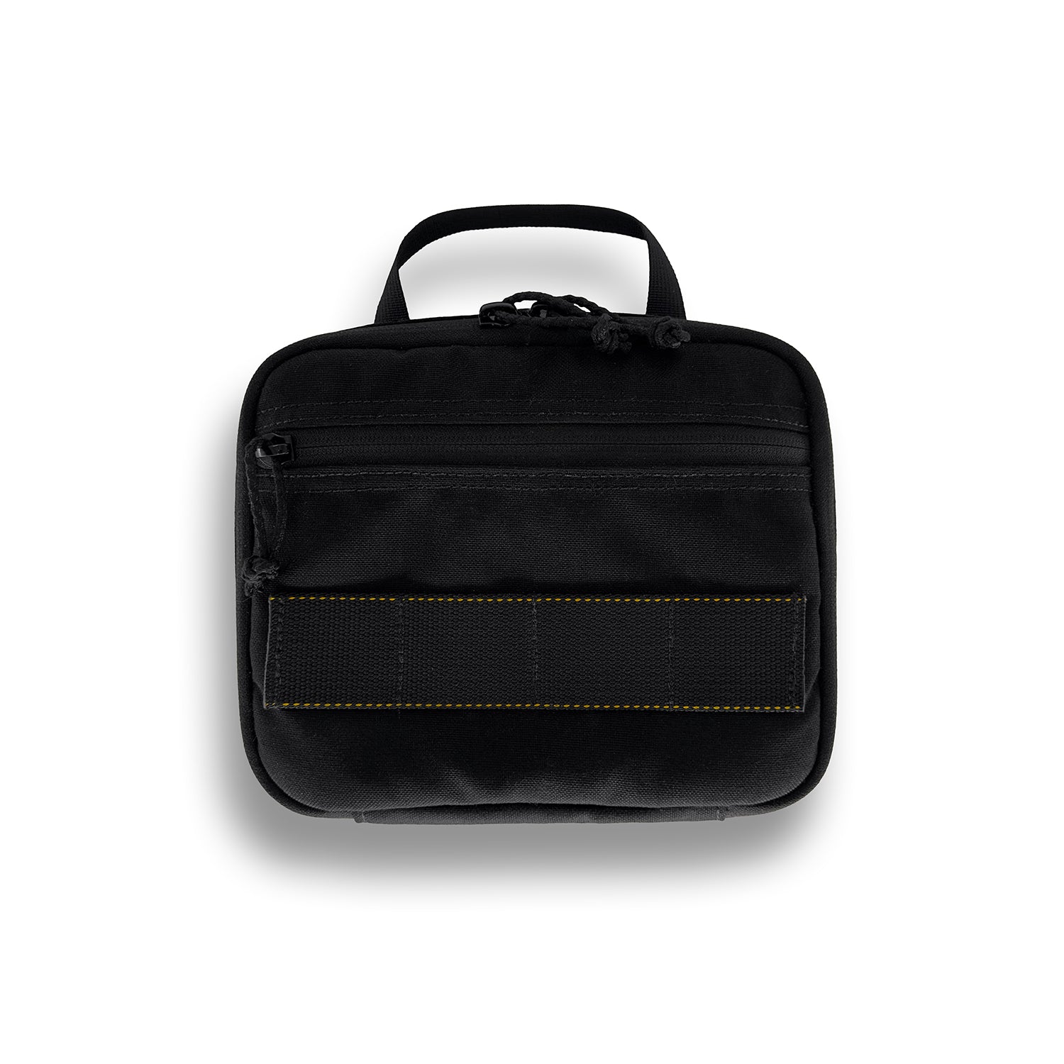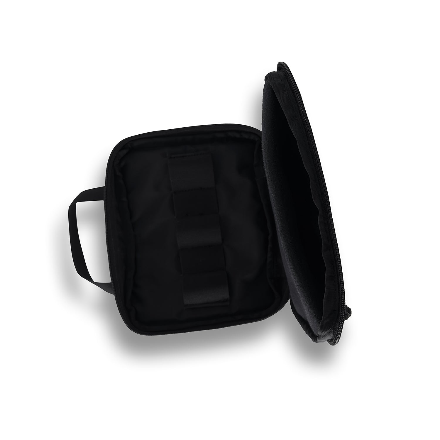 GTTC is padded with a soft interior lid. The interior slash pocket also accommodates various documents. Back of the GTTC has hook Velcro that includes a cover when not in use. Most S.O.Tech bags are loop lined so you can securely attach the GTTC inside without worrying about it falling out when the bag is opened. Pals webbing is also present if you wish to attach to a belt or outside of a bag.