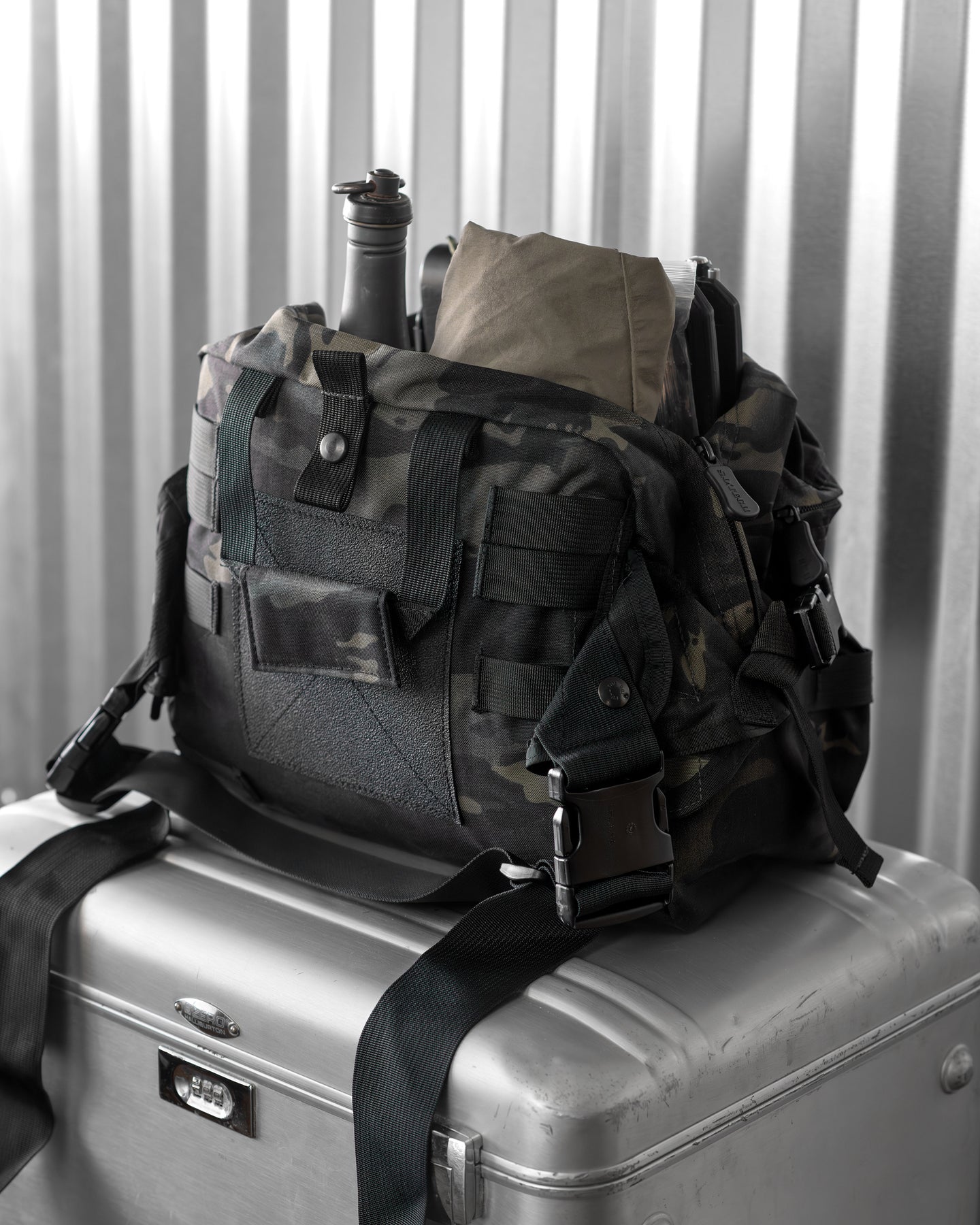 The contour of the bag laid perfectly as it rounded the hip, but because of its unique pleating, it could expand to the size of a basketball. And the outstanding feature is the shoulder strap. With a patented wing attachment system, it can wear in 9 different configurations depending on folding and snapping the wings or folding them inside the hidden compartment. Wear it as a sling, satchel, waist bag, fanny pack, vest mount pack, ruck lid, brief case carry, vehicle wall bag or pack organizer bag.
