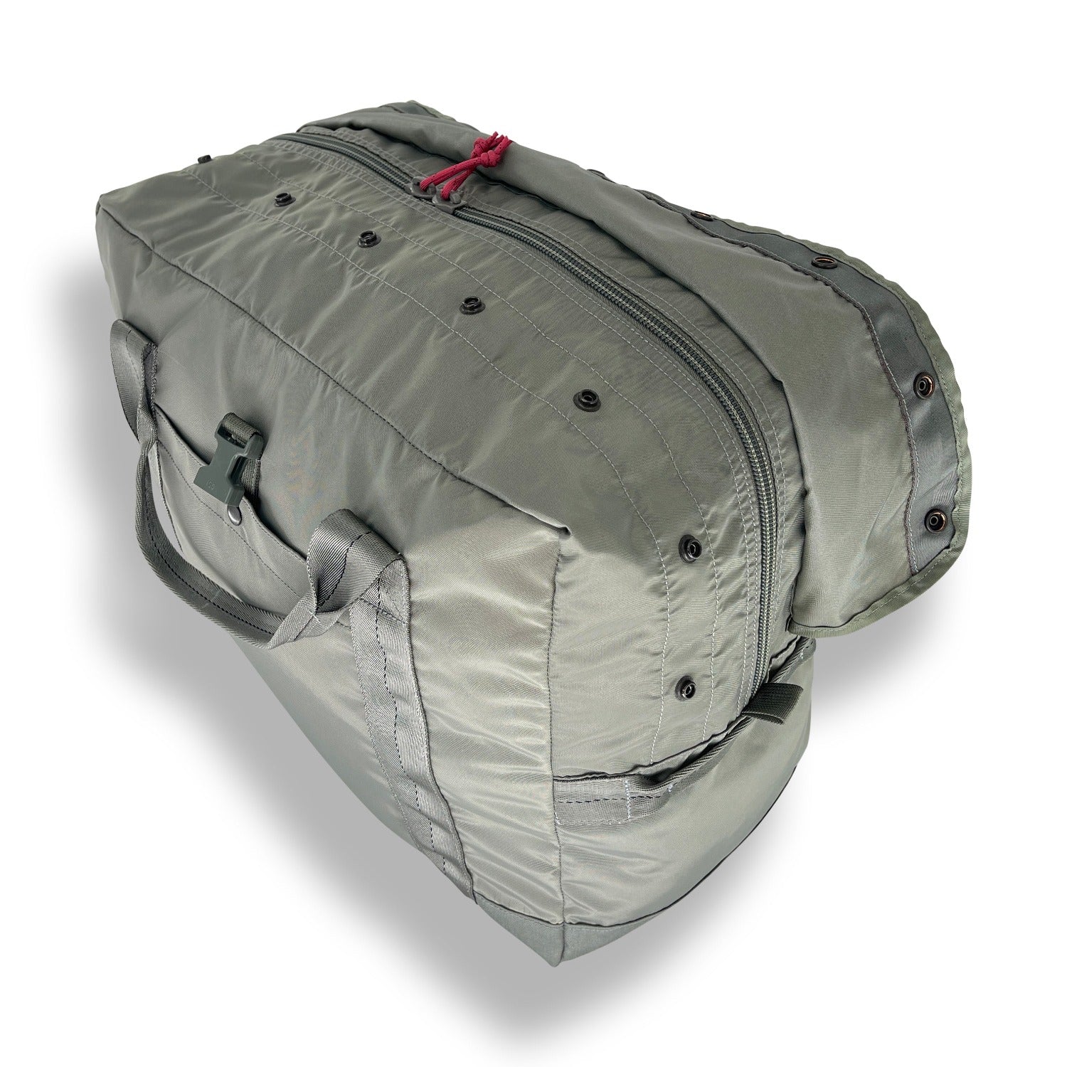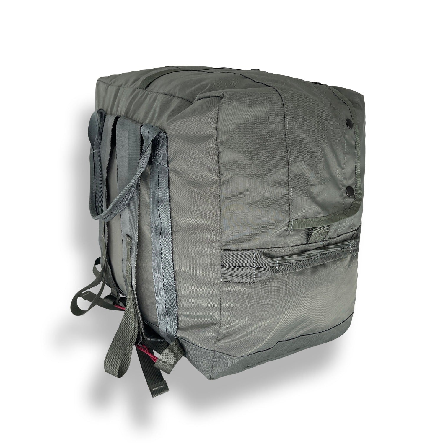 Paratrooper gear is part of S.O.Tech’s DNA.  When we were contracted to sew the Universal Parachutist Kit Bag for a major aerospace firm, we saw the huge design advantages over the old school aviator kit bag.  So when we were contracted by a major shoe company to do a collaboration on a tactical themed bag, we saw an opportunity to take the UPKB design and shrink it to gym bag dimensions.  That project was in colors to match the shoes, so this year while looking at the materials left over from our UPKB run, we saw an opportunity to make a paratrooper homage bag.