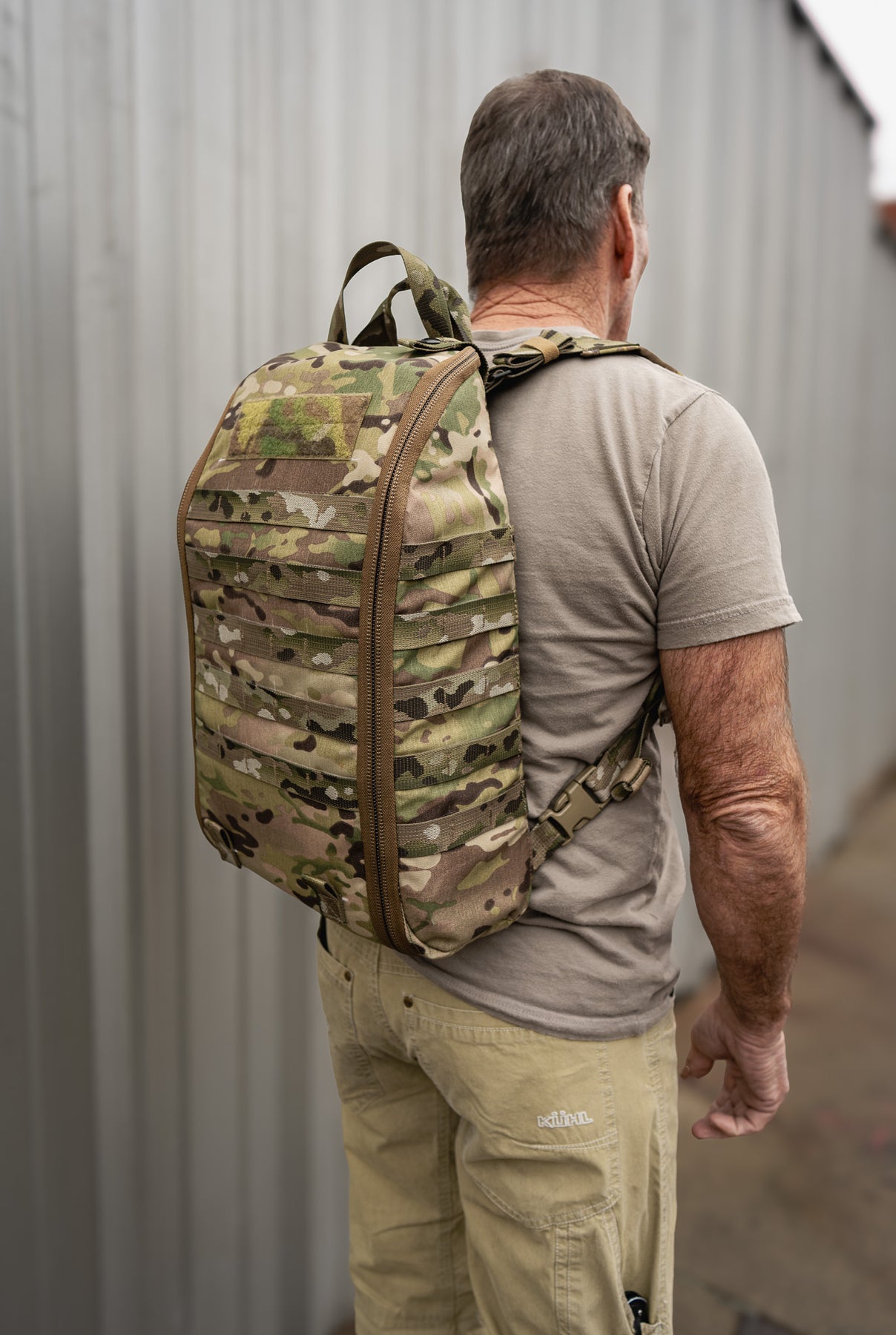For everyday carry this allows the user to use it as a common laptop or messenger bag.  Also for the SERE environment, the user can attach retainer square to the outside to carry scavenged items and water containers.