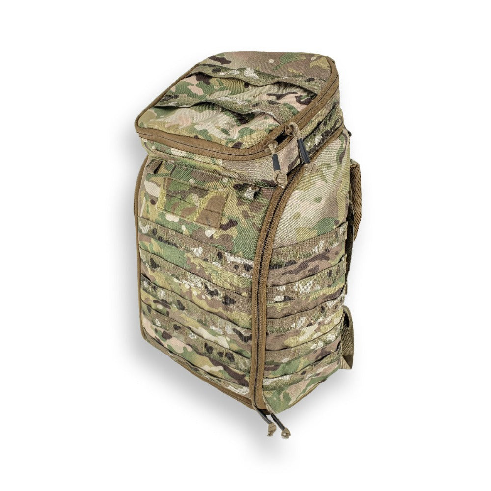 The Cobra pack received its name because this super comfortable long range back pack unzips as a wall panel shaped like a hooded cobra. We looked at the best commercial packs to develop the most comfortable load bearing design. But we saw that all of these packs only opened part way, forcing the medic to always treat out of a “bag.” Having seen the popularity of our RAMMP trauma panels for their organization, we designed the pack to open into a panel with configurable pouches. Keeping our Velcro nametapes, the Cobra packs allow for maximum personalization.