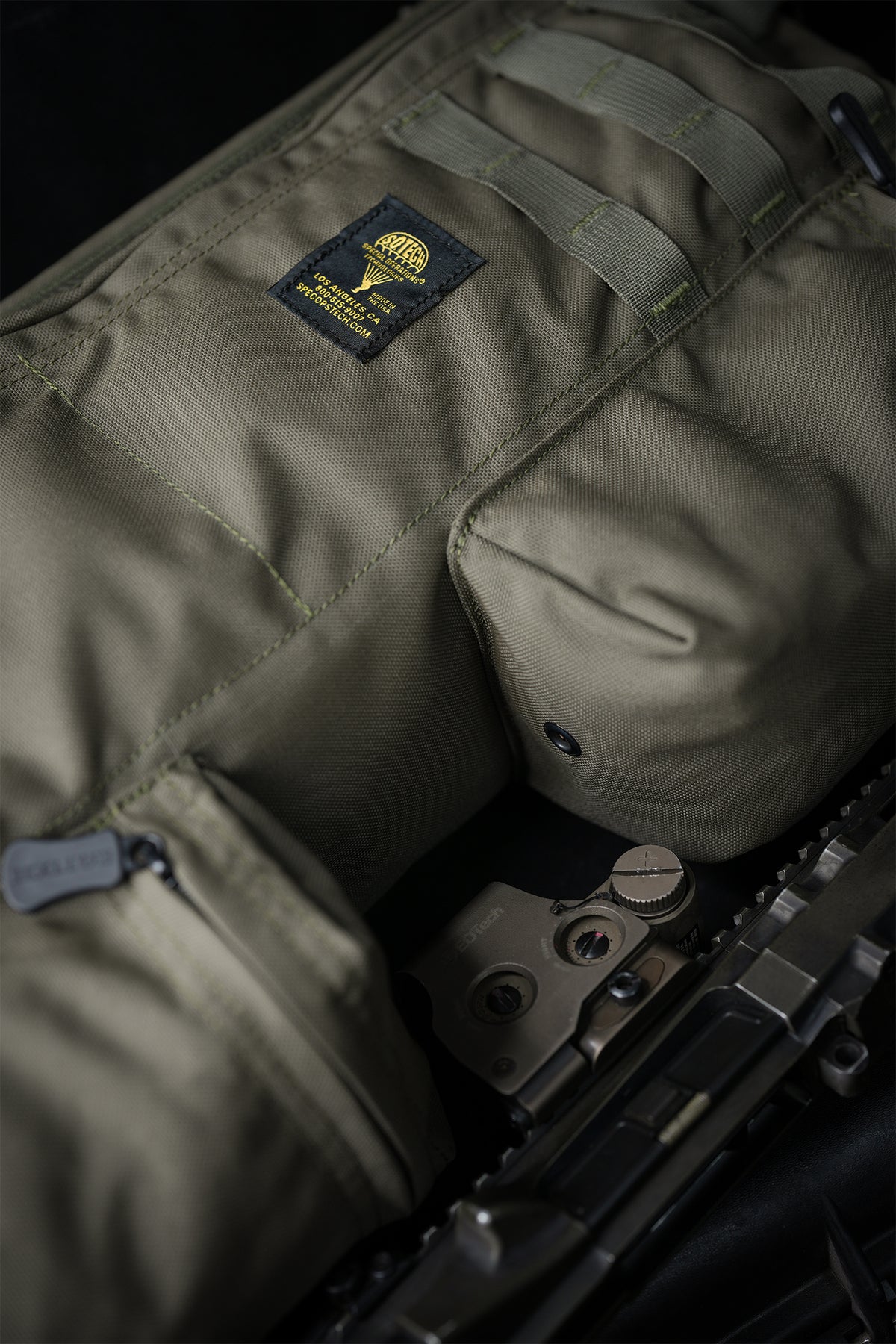 The S.O.Tech Go Bag was originally designed with JSOC’s elite operators as a grab and go survival bag for the bail out situations being engaged in Afghanistan and Iraq. Its configuration as a tubular over the shoulder bag made it a favorite among global SOF operators. And such a versatile design was destined to be elongated to carry and conceal broken down long arms for those “other missions” engaged by SOF.