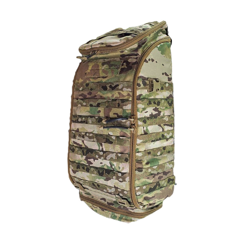 TACTICAL MEDICAL MODULAR CARRIAGE SYSTEM - GEN II is a modular medical pack system that functions across the 3 platforms of RUCK-TRUCK-HOUSE. This 2nd generation evolution of SOF medical packs incorporates a decade of wartime operator input. The result is a tailored set of modular pouches that are chosen to affix to any of these packs, harnesses, and panels. The system also supports a supply tree with the top being the box (MMCIS) which supplies/supports the hanging panel (RAMMP), and that in turn supports the large pack (MMP-L) which supports the medium pack (MMP-M) which supports the (MMP-S). The packs integrate and share the load with the medical belt/harness system (MACBS). The insert organizers and belt, pack and panel pouches fully integrate and can mount on any platform within this system. And finally, the IFAK (RFAP) is the base of the system mounting basic first aid items on all personnel on the team. This system follows the wounded soldier from the point of traumatic injury all the way through transport to the hospital.
